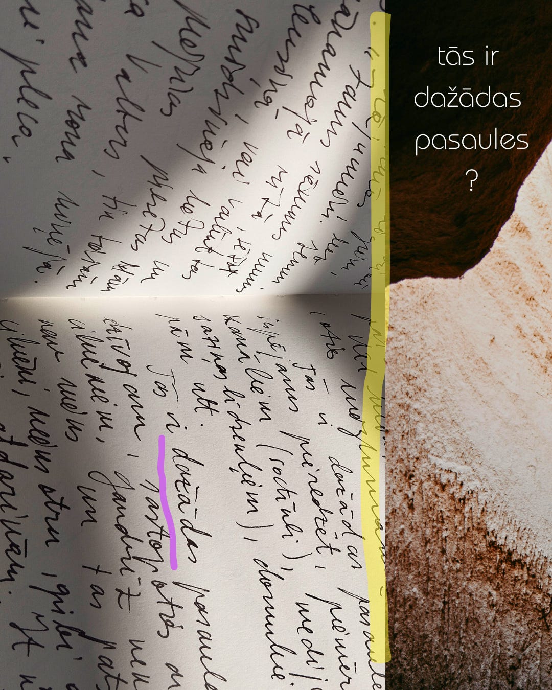 Tas viss esmu es pati – dzīvs cilvēks, organisms, portāls. Atklājies, kļuvis pieejams kā atsegums: zemes virspusē atsegtu iežu virsma. To arī tagad iepazīstu.
